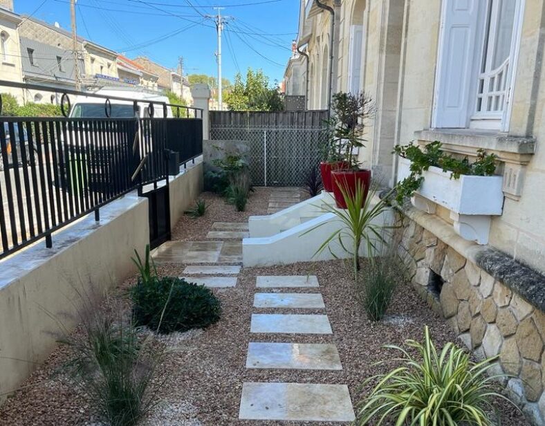 Dans le centre de Bordeaux, un jardin minéral, moderne et épuré, pensé pour offrir un cadre élégant tout en demandant peu d’entretien.